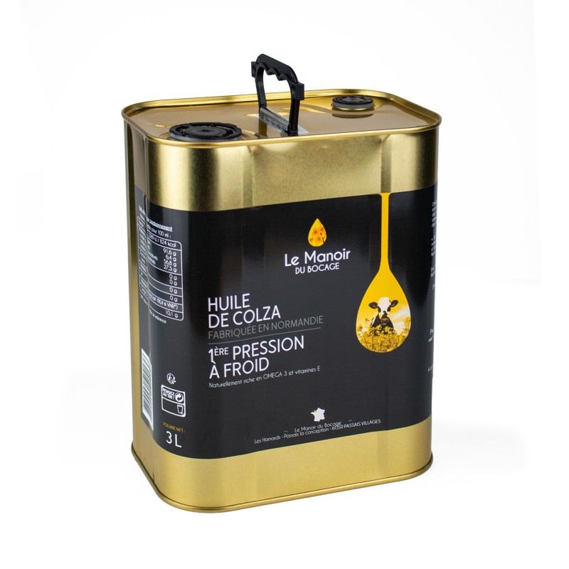 Le Manoir du Bocage virgin rapeseed oil is an entirely natural product. Produced according to traditional and artisanal methods, its aroma and its virtues come from the quality of the rapeseeds exclusively from Norman sustainable agriculture.