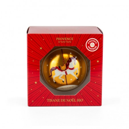 Presented in a pretty reusable metal bauble, this herbal tea is both a moment of sweetness and a wonderful gift idea to hang on the tree or slip under it.