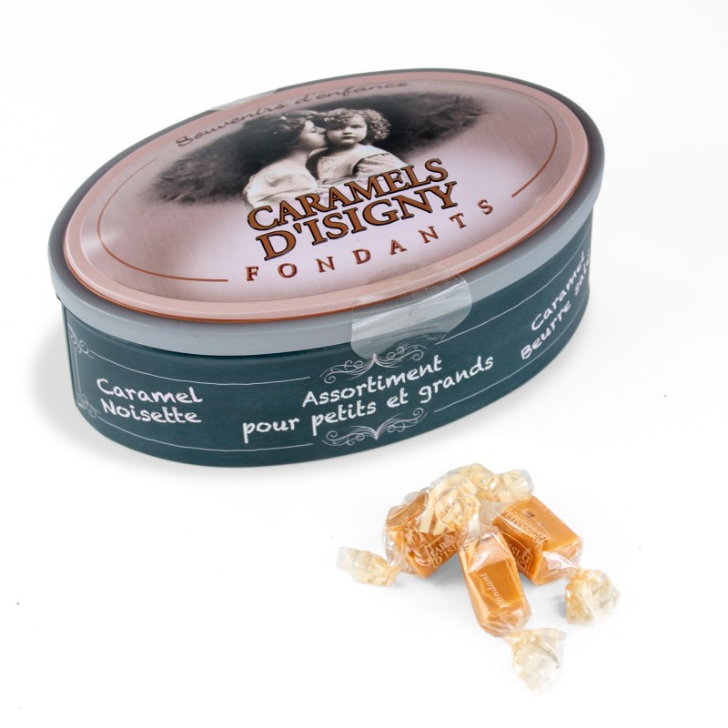 Un concentré de tendresse et de nostalgie ! La boîte fer Souvenirs d’enfance des Caramels d’Isigny évoque ces douceurs que l’on savourait petits… et que l’on aime toujours autant aujourd’hui.