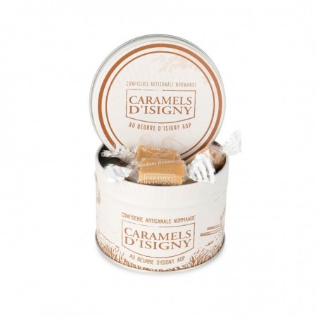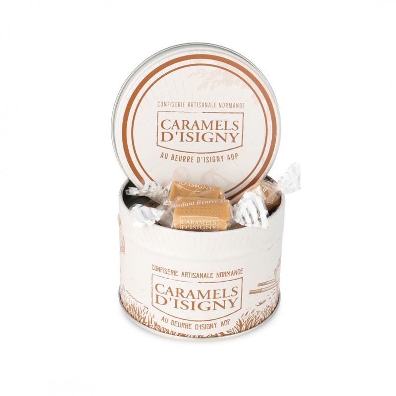 Présentés dans une boîte métallique joliment illustrée, ces caramels font également un petit cadeau plein de charme. Un clin d'œil à une époque où les douceurs se conservaient précieusement dans des boîtes que l’on gardait longtemps.