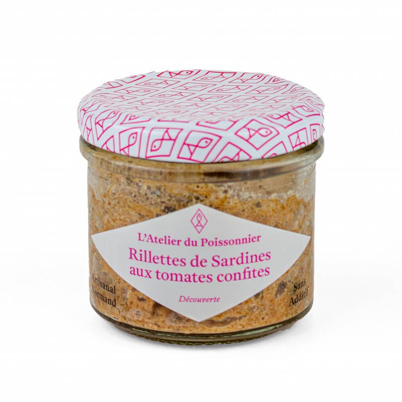 Découvrez un délicieux mélange terre et mer avec ces rillettes de sardines aux tomates confites, une création artisanale de l’Atelier du Poissonnier, en Normandie.
