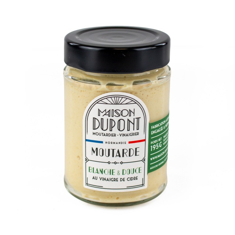Douce, onctueuse et pleine de charme, découvrez la moutarde blanche et douce au vinaigre de cidre signée Maison Dupont.